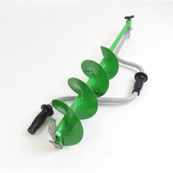 Ледобур Helios HS-150D - ледобур рыболовный складной шнековый с диаметром бурения 150 мм и левым вращением. Верхняя рукоятка ледобура смещена относительно оси ледобура на 130 мм, а нижняя на 155 мм. Такое расположение рукояток позволяет вращать ледобур одновременно двумя руками, тем самым, увеличивая скорость бурения лунок во льду.