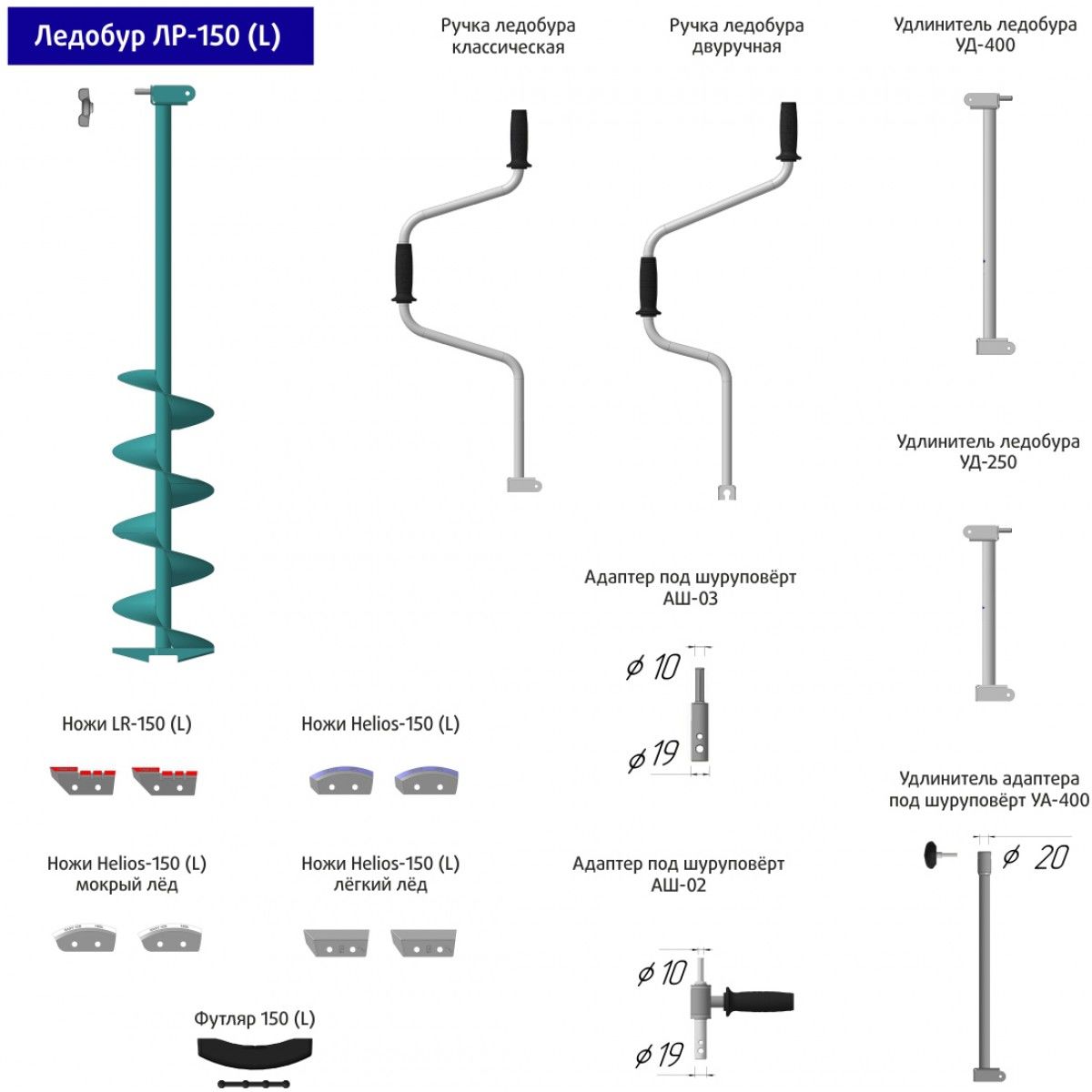Ледобур HELIOS 150 Long (левое вращение, длина шнека 71 см) LH-150LD-1