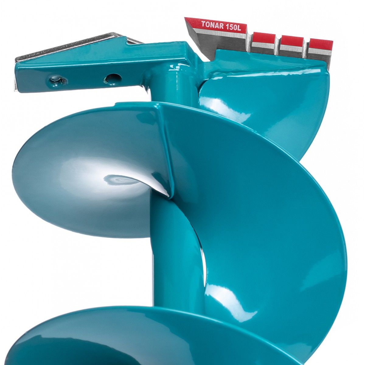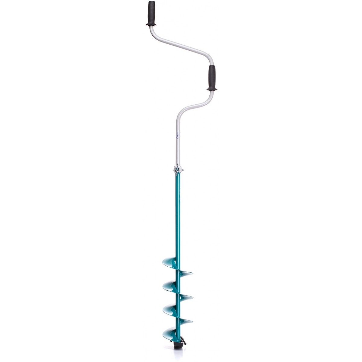 Одноручный ледобур уже почти не используется рыболовами. На смену им пришел более быстрый «двуручный». Верхняя рукоятка Ледобура ЛР-150Д смещена относительно оси шнека на 130 мм, а нижняя на 150 мм. Скорость бурения сразу возрастает, а нагрузка равномерно распределяется на две руки и становится незаметной. Поскольку ход бура при таком бурении более плавный (без рывков) нет эффекта «закусывания» при прохождении нижней кромки льда.