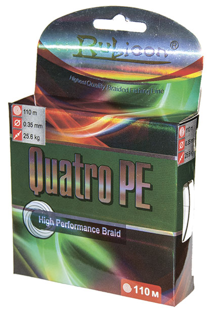 Плетеная леска Quatro PE изготовлена из 100% материала UHMW PE (ультра-высокомодульный пространственно-ориентированный полиэтилен). Шнур очень гладкий и практически круглый, благодаря чему его дальность заброса очень велика. А плотное плетение и хорошая пропитка, делают леску долговечной и очень устойчивой к истиранию. Шнур хорошо скользит сквозь кольца и в то же время практически не шумит. Каждые 10 метров имеют свой цвет (зеленый, оранжевый, желтый, красный). Такая раскраска позволяет контролировать дальность заброса лески, оценить размер потерь при отрыве, определить на каком расстоянии от рыболова произошла поклевка.