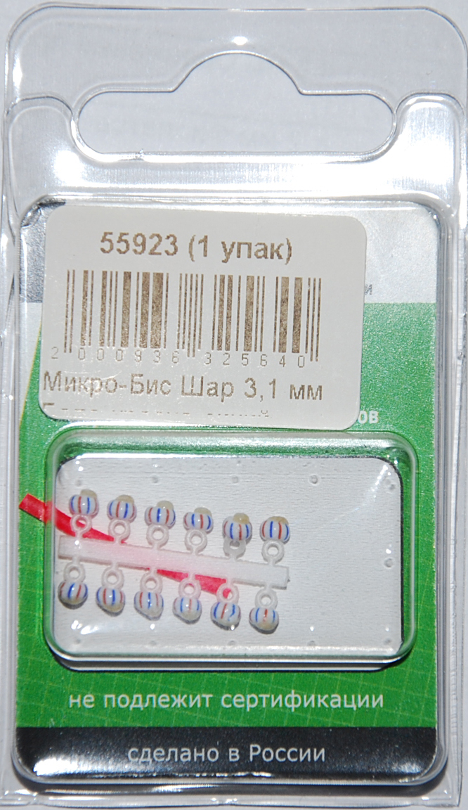Микро-Бис Шар 3,1 мм Бело-красно-синий арбуз тип подвески короткая (12 шт)