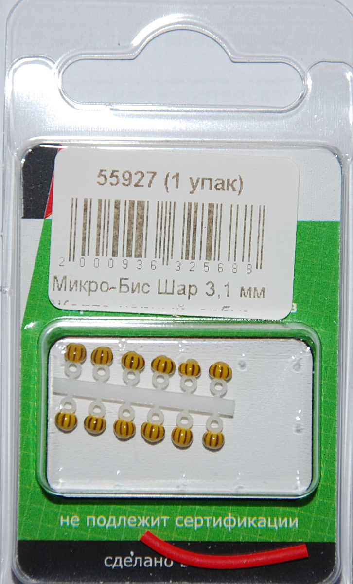 Микро-Бис Шар 3,1 мм Желто-черный арбуз № 2 тип подвески короткая (12 шт)