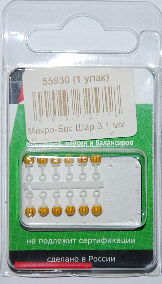Микро-Бис Шар 3,1 мм Желто-красный арбуз тип подвески длинная (12 шт)