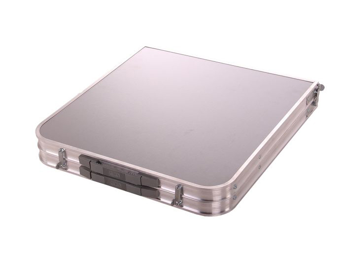 Стол складной с алюминиевой окантовкой. Цвет и некоторые незначительные детали могут отличаться от изображения. Два положения высоты: 445 мм и 610 мм. Материалы: профиль алюминиевые, ножки сталь, МДФ, пластмасса.