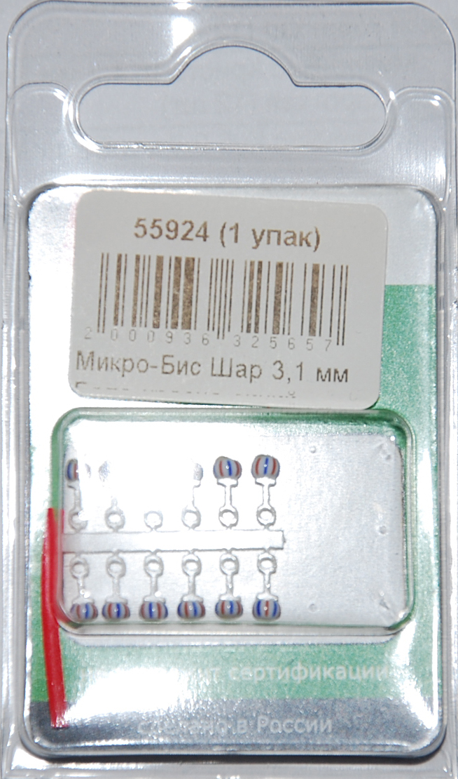 Микро-Бис Шар 3,1 мм Бело-красно-синий арбуз тип подвески длинная (12 шт)
