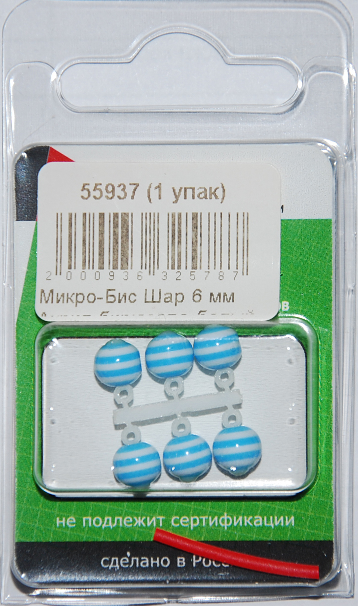 Микро-Бис Шар 6 мм Акрил-бирюзово-белый арбуз тип подвески короткий (6 шт)