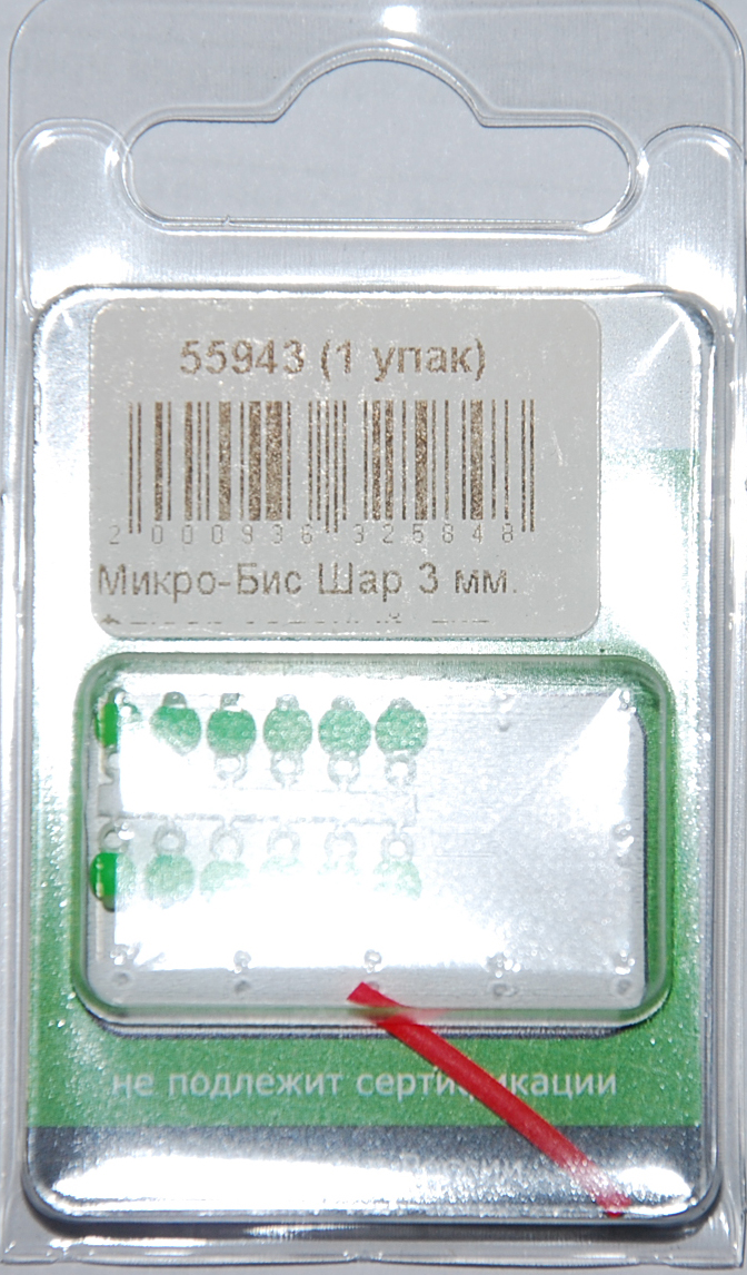 Микро-Бис Шар 3 мм. Флюор зеленый, тип подвески короткая (12 шт)