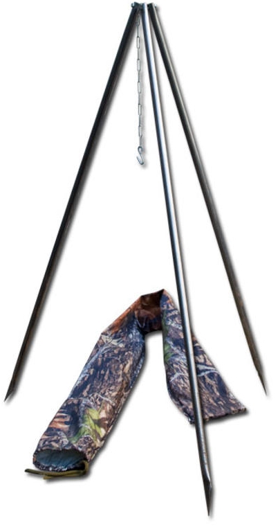 Тренога для приготовления пищи на костре, имеет удобный S-образный крючок на цепи длиной 20см. Поставляется в чехле.