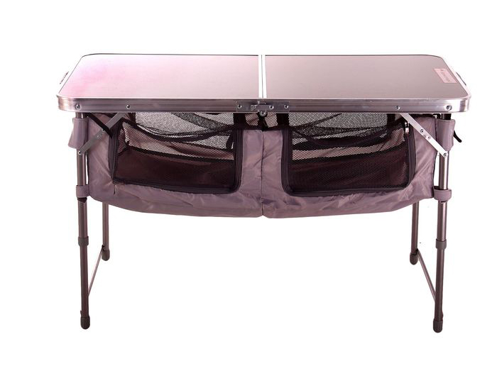 Стол складной с алюминиевой окантовкой. Цвет и некоторые незначительные детали могут отличаться от изображения. Два положения высоты: 445 мм и 610 мм. Материалы: профиль алюминиевые, ножки сталь, МДФ, пластмасса.