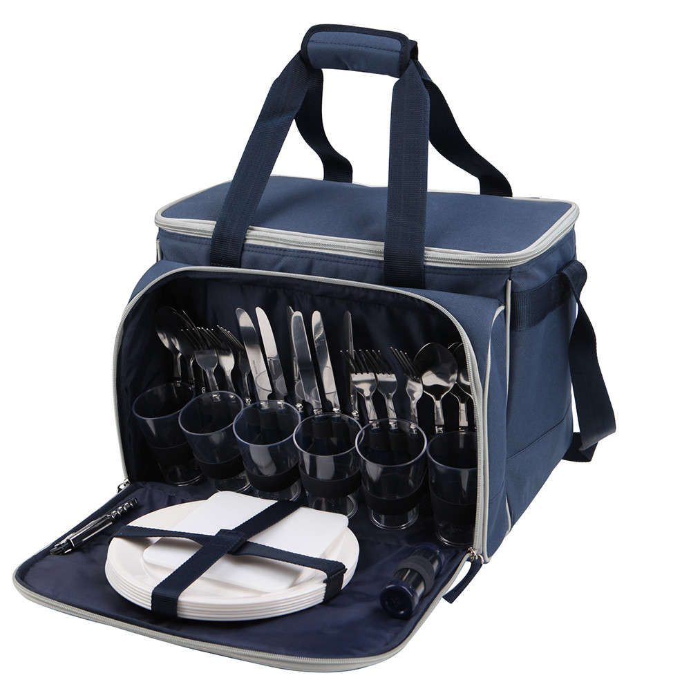 Сумка-холодильник - незаменимая вещь для отдыха на природе и хорошего пикника. Большое изотермическое отделение позволит сохранить свежесть и прохладу напитков и еды. В комплекте полный набор качественной многоразовой посуды на 6 персон.