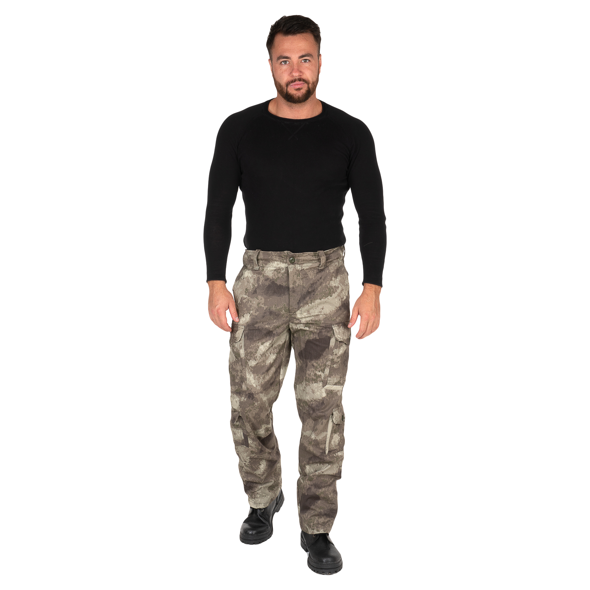 Аналог разработанного США костюма M-1965, он же всемирно известный M-65. Очень удобная куртка, с фирменным "стоячим" воротником, в который убирается капюшон. Брюки - хаки, на 8 карманов. Костюм сделан универсальным, с возможностью подгонки по ширине. Ткань - 100% хб, очень мягкая.