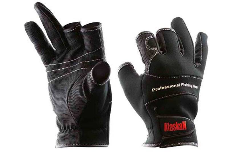 Перчатки спиннингиста Alaskan с тремя открытыми пальцами для удобства манипуляций со снастями изготовлены из комбинации двух материалов: внешняя сторона - из тонкого эластичного неопрена для сохранения рук в тепле, внутренняя - из специально обработанного водоустойчивого и нескользящего неопрена Shark Neoprene.