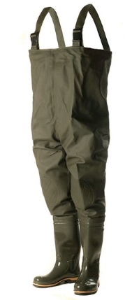 Классический рыбацкий полукомбинезон. Верх - из легкой водонепроницаемой ПВХ-ткани (винитол) крепится к базовому сапогу из ПВХ на современном итальянском оборудовании при помощи сварки током высокой частоты. Это гарантирует абсолютную водонепроницаемость.